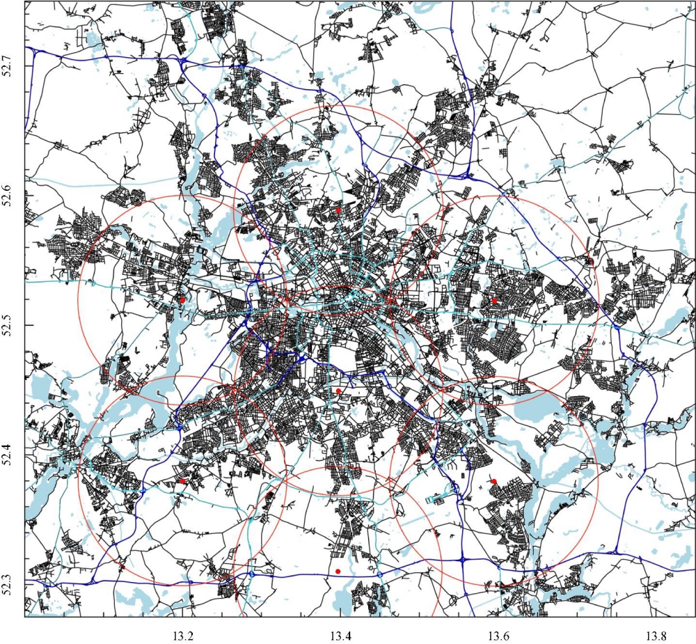 Map of the street network and potential UAV depots in Berlin