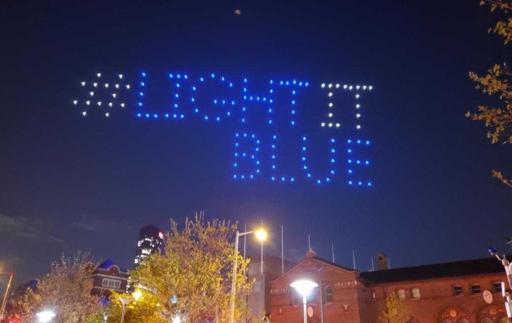 In accordance with stay at home mandates, #LightItBlue focuses on buildings with existing LED lighting or video screen technology which can be remotely programmed. Thanks to its efficient system design, including advanced pre-programming and control capabilities, Verge Aero’s fleet of drones could be deployed by just two trained technicians, who were easily able to work while observing social distancing guidelines.