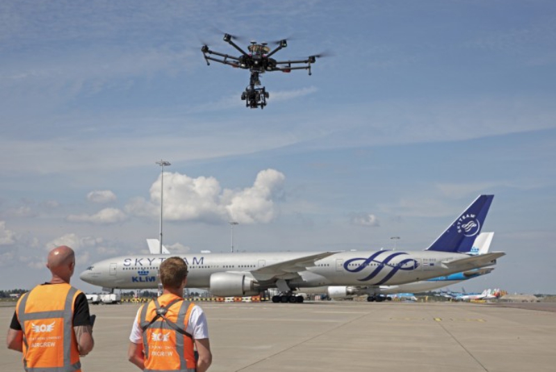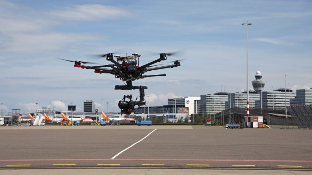 A trial with the use of drones will begin at Schiphol. During the trial, there will be drones with cameras for inspection of taxiways, small buildings and aircraft and drones that transport light goods between different locations at the airport.