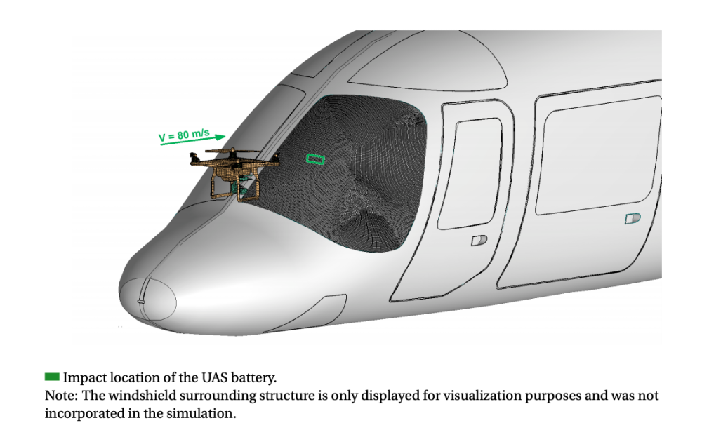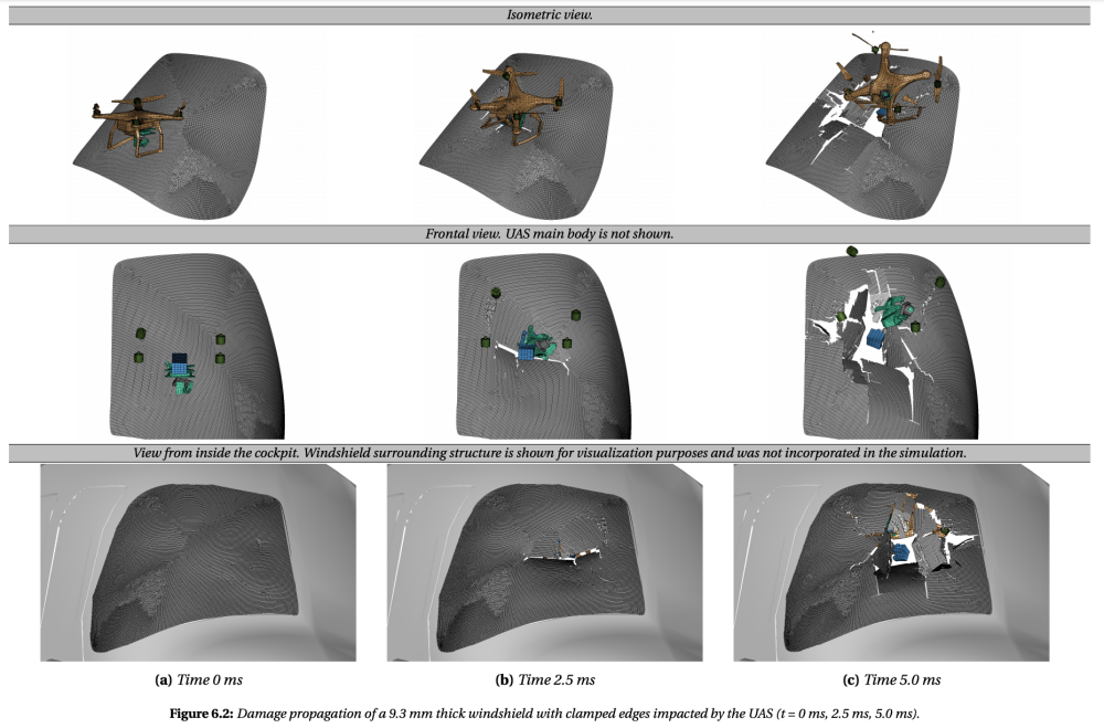 Researchers at the Delft University of Technology, TU Delft, have produced a 98-Page research thesis on ‘Predicting helicopter damage caused by a collision with an Unmanned Aerial System using explicit Finite Element Analysis‘.
