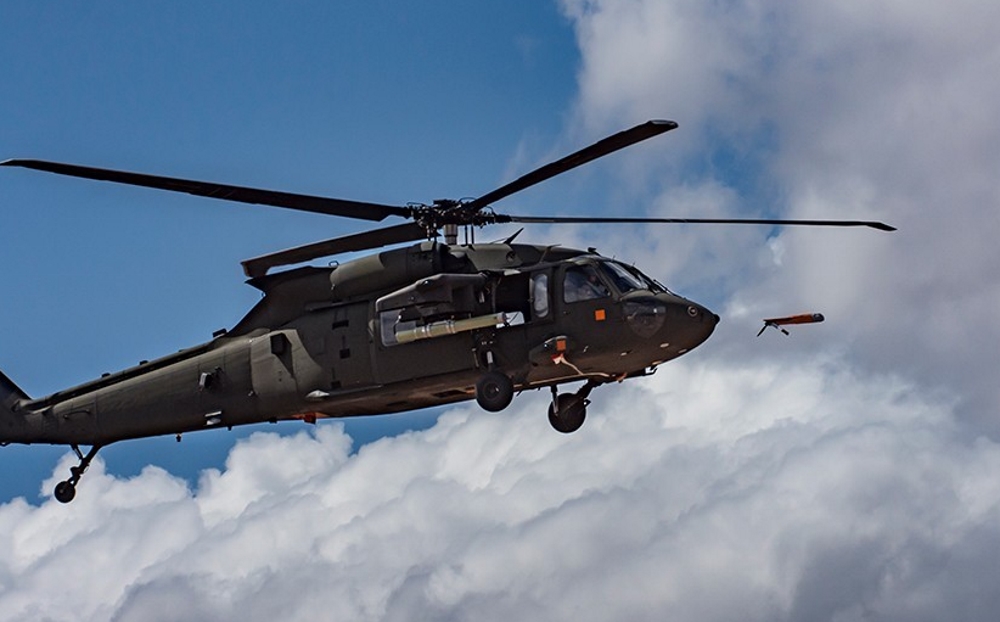 Photo: An Area-I Air-Launched, Tube-Integrated, Unmanned System, or ALTIUS, is launched from a UH-60 Black Hawk at Yuma Proving Ground, Ariz., March 4 where the U.S. Army Combat Capabilities Development Command Aviation & Missile Center led a demonstration that highlighted the forward air launch of the ALTIUS. Courtesy photo provided by Yuma Proving Ground