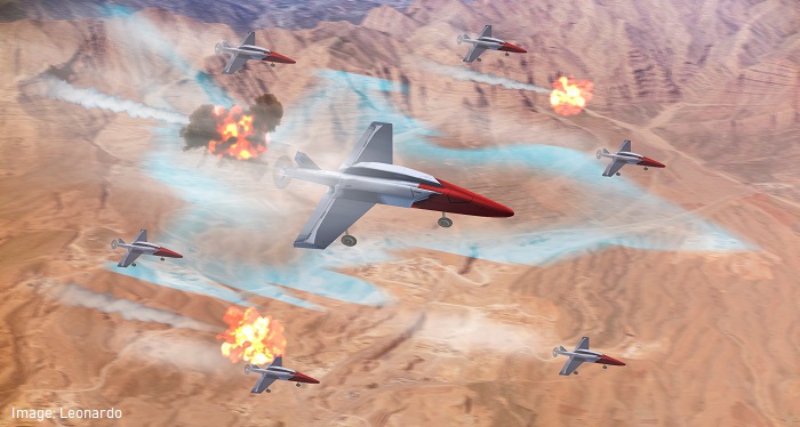 During the demo, a number of small, remotely-piloted aircraft equipped with Leonardo’s powerful electronic warfare (EW) jamming technology were used to confuse and overwhelm trial radars simulating enemy air defense systems.