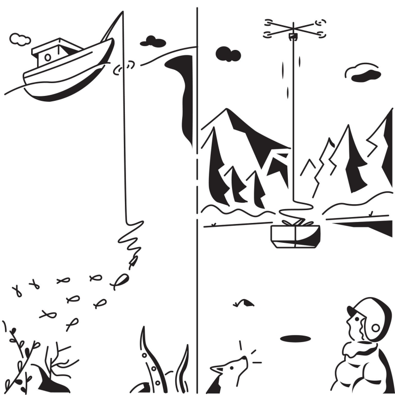- Reusable fabric pouches – Elastic pouches secure payloads of varying form factors and can be left with the recipient, or reeled up to retrieve payloads and be reused