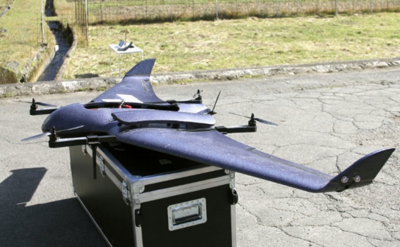 During the test flight opened to the media, a fixed-wing drone that can fly at up to 30 kilometers per hour departed from a park in Yabu, Hyogo Prefecture.