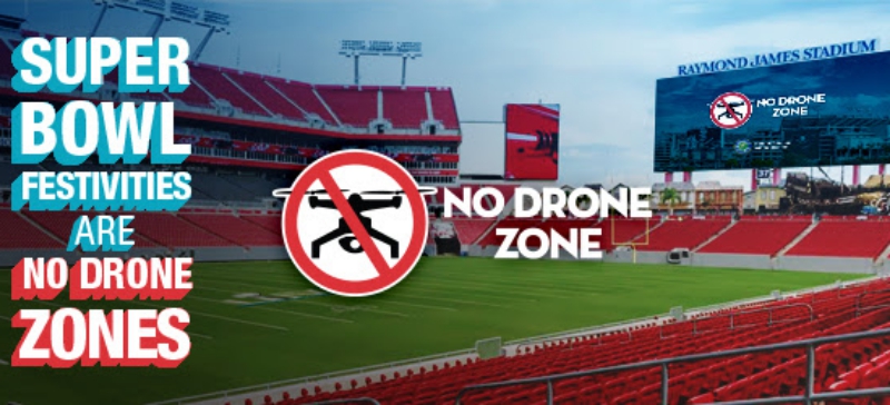 Drones are also prohibited for one nautical mile around Raymond James Stadium on February 7 from 10 a.m. until the TFR for the game takes effect. Further details are available in the drone TFR (PDF).
