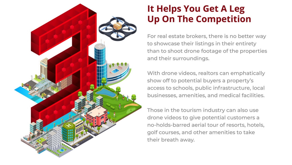 Thanks to drone videography, the cost of producing superb and highly detailed aerial videos has gone down dramatically. This has helped level the playing field and provide businesses with equal opportunities to create first-rate videos that can effectively compete with the big and established brand names in the industry.