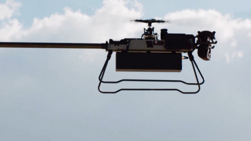 Controlled by personnel anywhere within a 70 km radius, a Malloy unmanned aircraft carrying supplies made the journey to a group bunkered down ashore.