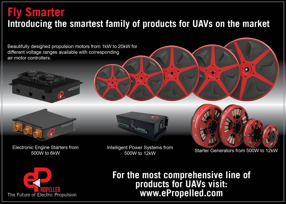 ePropelled, the Massachusetts-based technology company offering leading-edge electromagnetic systems, unveiled the next-generation family of power generation and propulsion products for UAV and other aviation applications. The ePropelled UAV product line consists of starter generators, intelligent power systems, DC supplies, and electronic engine starters that operate with internal combustion engines, and electric propulsion motors and air motor controllers for eVTOLs, full electric and hybrid aircraft.
