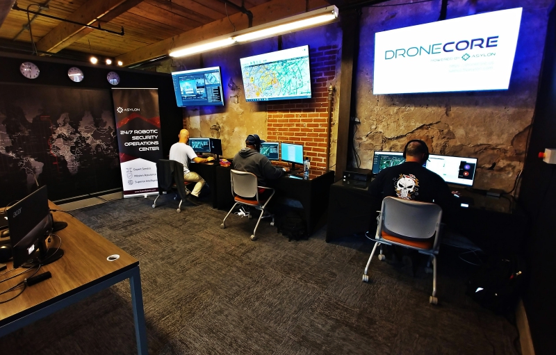 Powered by the proprietary Asylon DroneIQ software system, ground and aerial security robots can be programmed to conduct routine patrols or respond to alarms triggered by Internet of Things (IoT) connected alarms. Because the robots are field-programmable, they support long-term software development and upgrades. The intelligent machines are capable of supporting multiple payload options for both aerial and ground assets to collect actionable data to improve security while the 24/7 RSOC delivers immediate remote control, monitoring, and intelligence services. These data driven solutions help unlock AI and prescriptive analytics for anomaly detection across multiple sites. From anywhere in the world, the DroneCore system can be controlled and the video feed can be viewed in real-time. To date, Asylon has launched, managed, and tracked over 10,000 automated drone missions through their platform for their customers.
