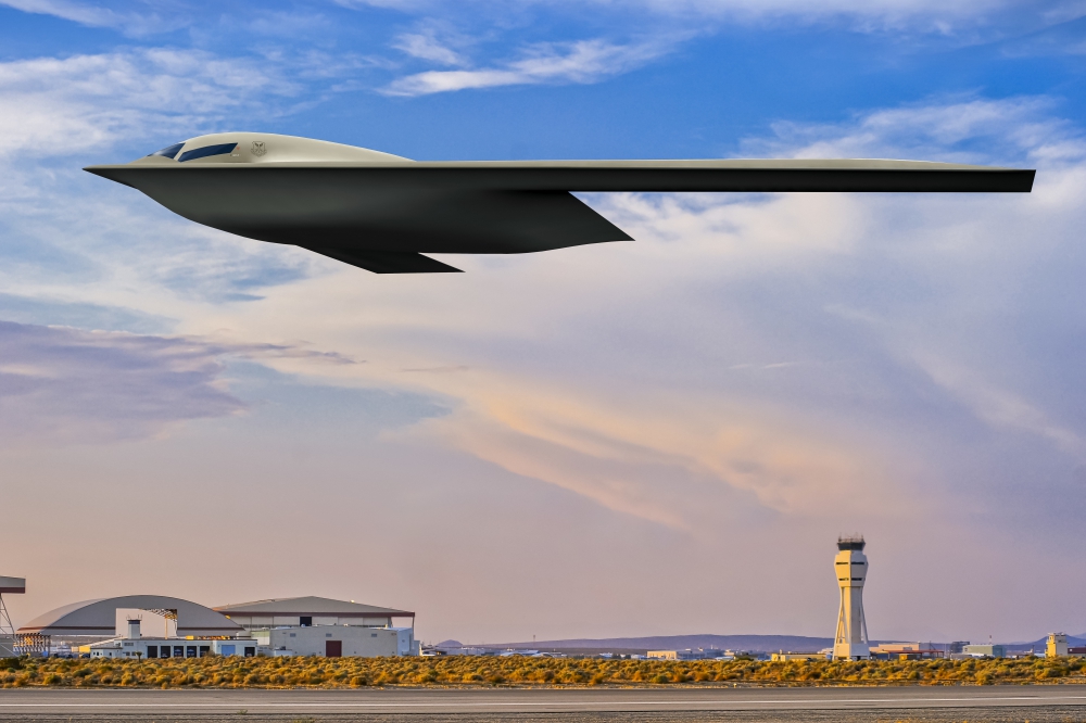 The new rendering highlights the future stealth bomber with Edwards Air Force Base, California, as the backdrop. The 420th Flight Test Squadron based at Edwards AFB will plan, test, analyze and report on all flight and ground testing of the B-21 Raider.
