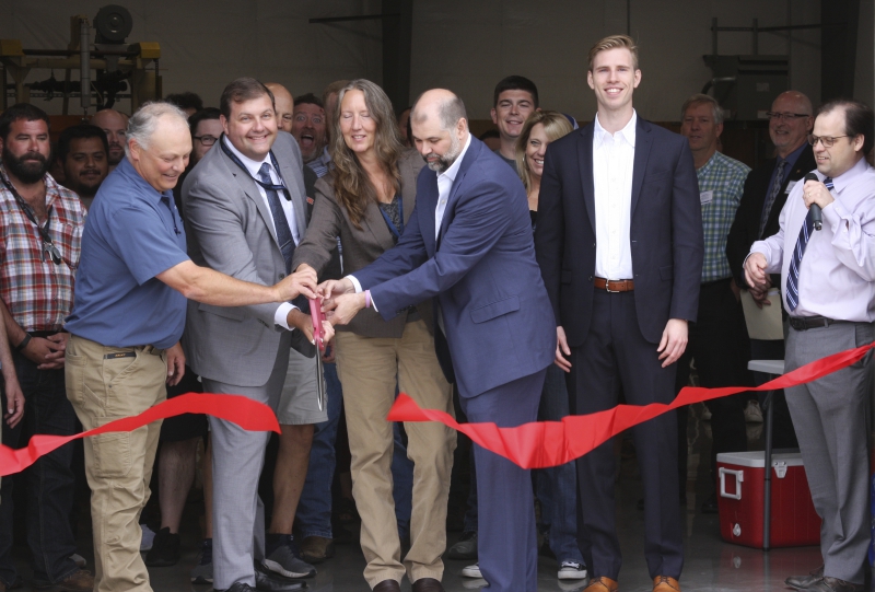 The ceremony concluded with an official ribbon cutting (pictured) followed by a catered lunch of local favorites and tours of the new facility. Northwest UAV will have a PEM hydrogen fuel cell prototype for viewing at Booth #2341 at the AUVSI XPONENTIAL show in August.