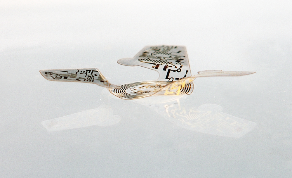 But what about all the electronic litter? Rogers has a plan for that. His lab already develops transient electronics that can harmlessly dissolve in water after they are no longer needed — as demonstrated in recent work on bioresorbable pacemakers. Now his team is using the same materials and techniques to build microfliers that naturally degrade and disappear in ground water over time.
