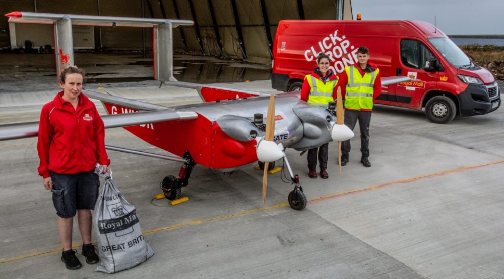 The mail is being carried by a large, twin-engine, UK-built unmanned aerial vehicle (UAV) named Ultra which can transport 100kg of post of all shapes and sizes – equivalent to a typical delivery round.