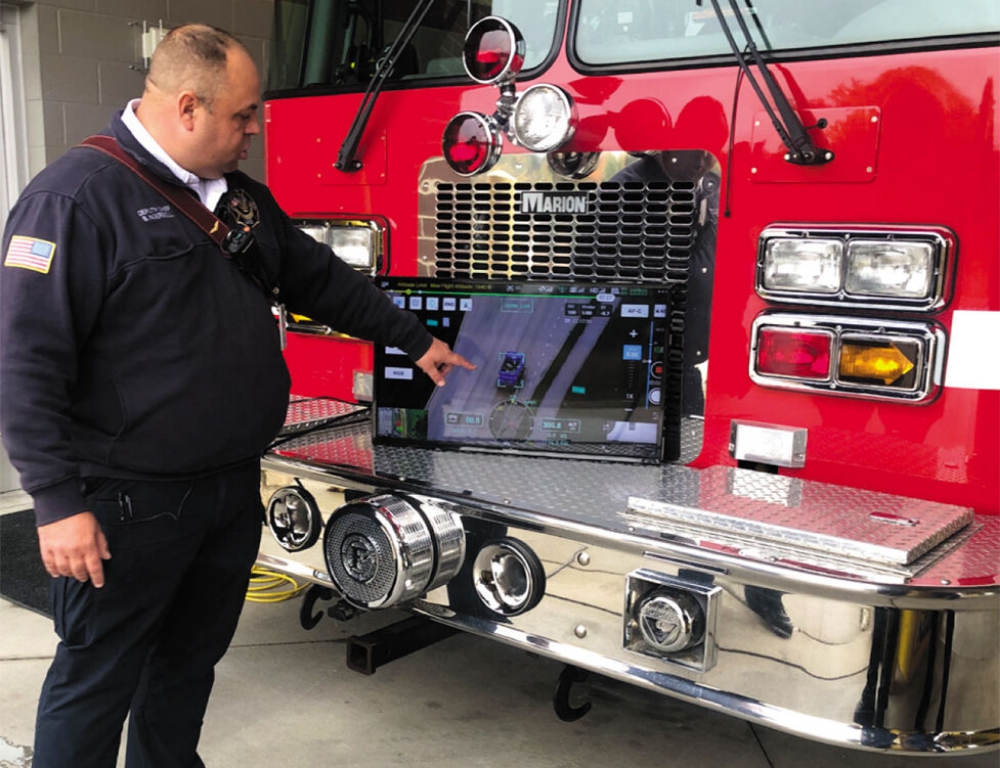 Deputy Fire Chief and Lead Pilot Brad Ingersoll demonstrates how real-time footage is gathered by drones