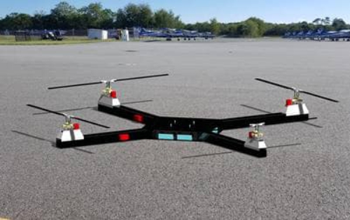 A test model of a quadcopter without avionics (rendering pictured) will be used to explore different control strategies and analyze them for best performance during emergency scenarios