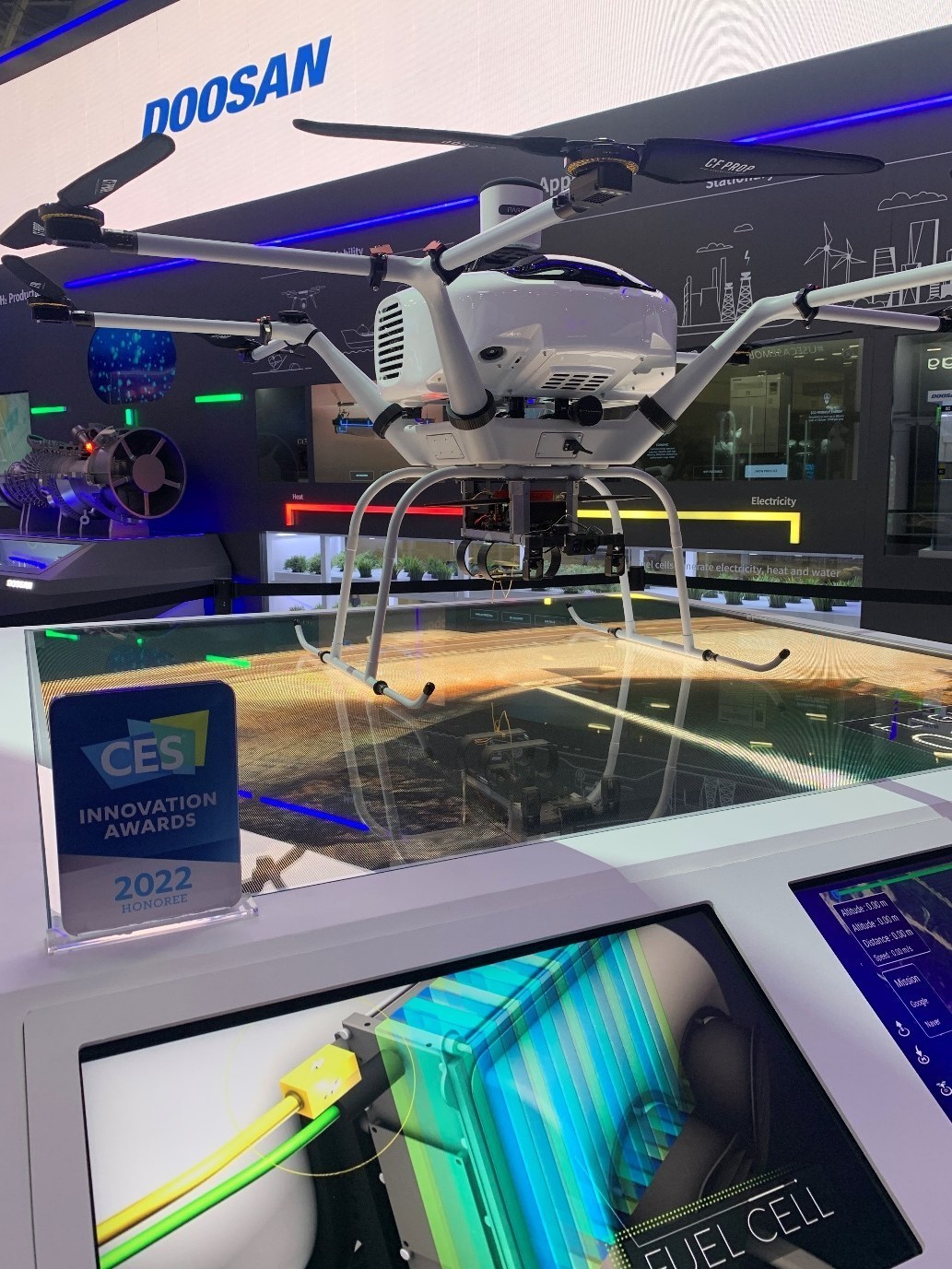 Doosan Mobility Innovation (DMI) and 42air signed a memorandum of understanding (MoU) at CES 2022 for a partnership to co-develop delivery services using hydrogen fuel cell unmanned aerial vehicles (UAV).