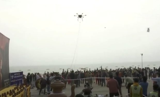 Drones sprayed holy water from the Ganges on thousands of Hindu pilgrims last week to reduce crowding during a massive festival being held despite soaring Covid cases in India.