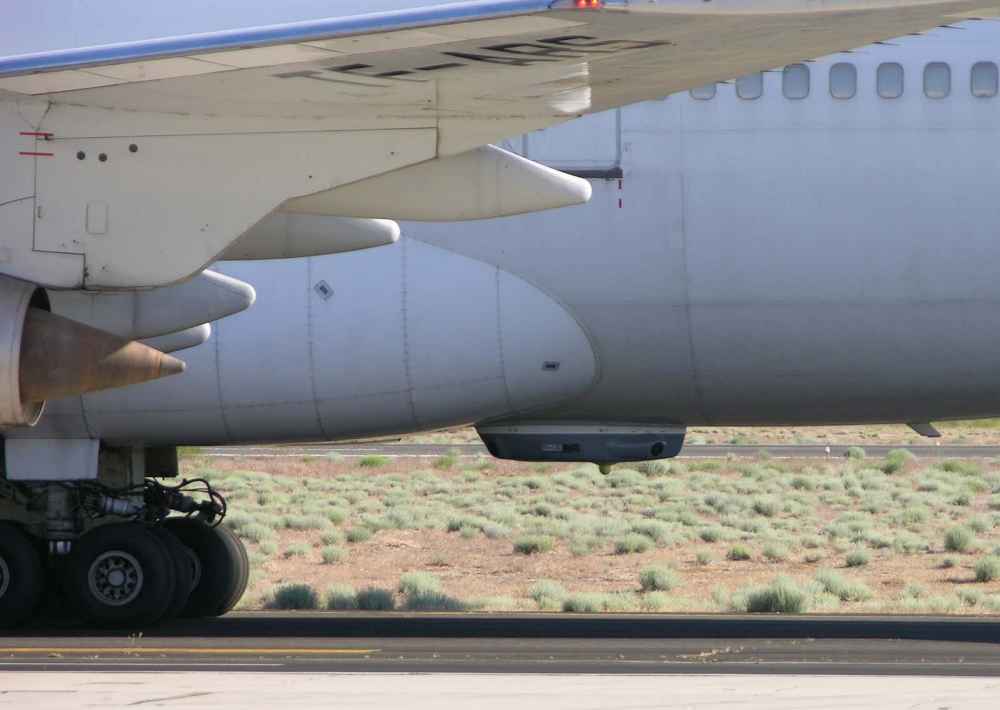 A Northrop Grumman Guardian pod mounted on an Air Atlanta Europe 747-300 leased to FedEx for testing