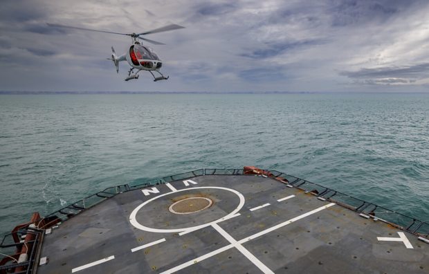 Trials were conducted using an optionally piloted vehicle (OPV) based on a modified Guimbal Cabri G2 equipped with the autonomous take-off and landing (ATOL) system developed for the VSR700. This flight test campaign paves the way for the upcoming demonstration of the VSR700, at sea, onboard a French Navy frigate.