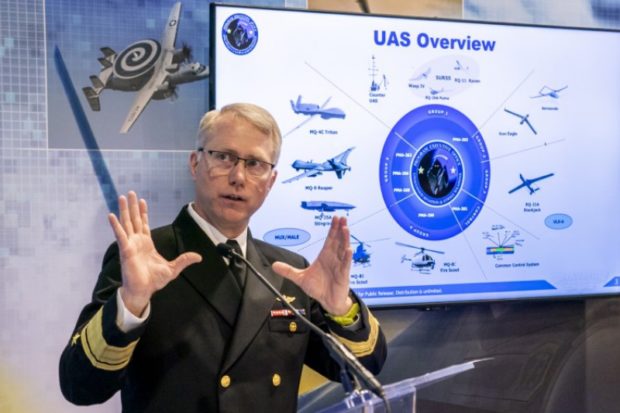 Photo: Rear Adm. Brian Corey, program executive officer for unmanned and weapons, discusses Navy UAS. SOLARES PHOTOGRAPHY