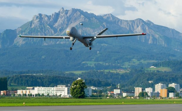 On Wednesday June 15, at shortly after 07:00, the new reconnaissance drone for the Swiss Armed Forces in Emmen completed its first flight. With this successful test flight, the reconnaissance drone system 15 (ADS 15 – Hermes 900 HFE ) reaches another important milestone.