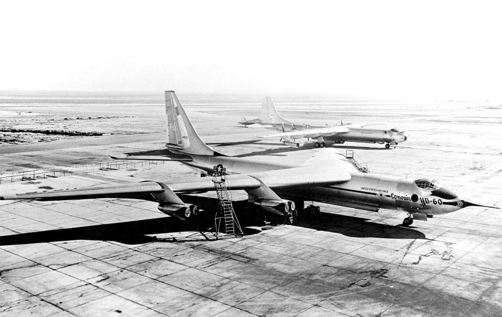 The YB-60’s unofficial competitor for an Air Force contract was Boeing’s B-52 Stratofortress. Convair’s proposal was substantially cheaper than Boeing’s, since it involved modifying an existing design rather than starting from scratch. Like the B-52, it was powered by eight Pratt & Whitney J57-P-3 turbojets mounted in pairs in four pods suspended below the wing. Prior to this engine configuration Convair had evaluated a six-turboprop design and one with 12 J47 engines.