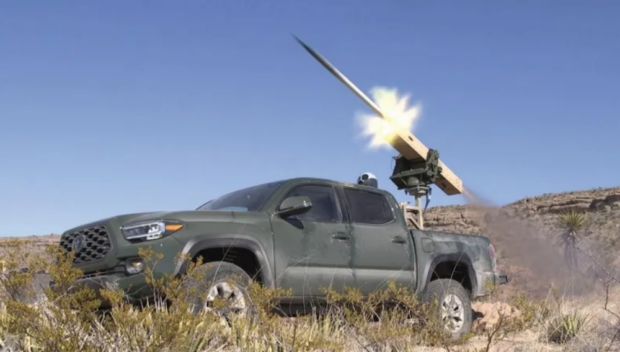 L3Harris’ Vehicle-Agnostic Modular Palletized ISR Rocket Equipment (VAMPIRE) is a portable kit that can be installed on most vehicles with a cargo bed for the launching of the advanced precision kill weapons system (APKWS) or other laser-guided munitions. The Vampire is a kinetic system that uses a small missile, essentially, to shoot UAVs out of the sky. This L3Harris suitcase-type APKWS launcher and designator kit provides a rapid solution for arming non-tactical vehicles (NTV).