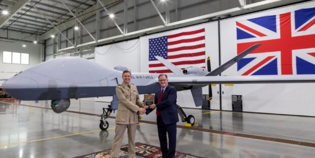 Photo: Air Vice-Marshal Simon Ellard, director, Combat Air at Defence Equipment and Support (DE&S), formally received the first of 16 Protector RG1 UAVs from General Atomics upon completion of the acceptance test procedures in late August.