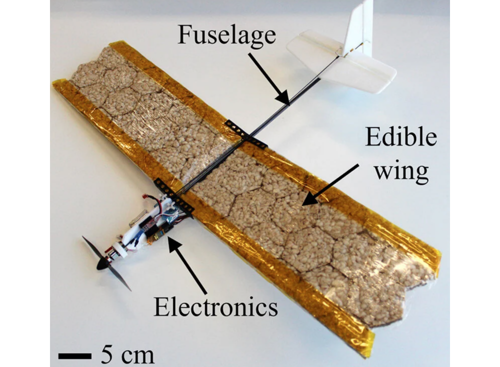 A team of researchers at the Swiss Federal Institute of Technology in Lausanne (EPFL) has developed an edible drone to serve as life-sustaining food for people trapped in emergency situations. Two wings made of rice cakes are attached to a thin, rudimentary fuselage, a tail unit and a propeller unit, completing the innovation that could save the lives of adventurers who are lost, injured, or unable to move.