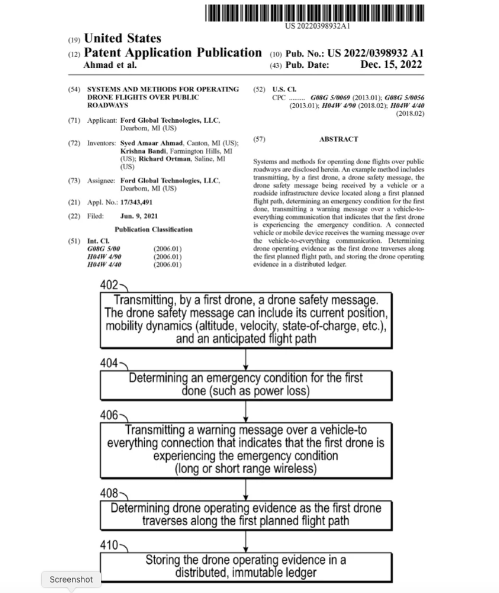 Ford Motor Company has filed a patent for drone flights over public roadways, Ford Authority has learned. The patent was filed on June 9th, 2021, published on December 15th, 2022, and assigned serial number 0398932.