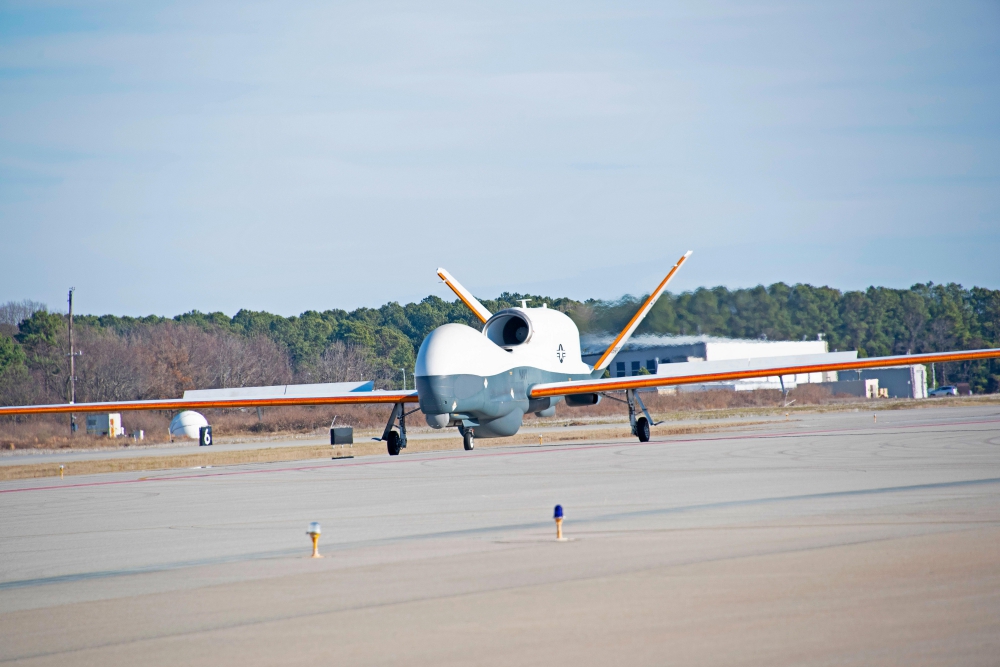 The MQ-4C Triton test team conducted the first flight to assess the unmanned aircraft system’s ability to fly with wing ice accumulation Jan. 25 at Patuxent River.