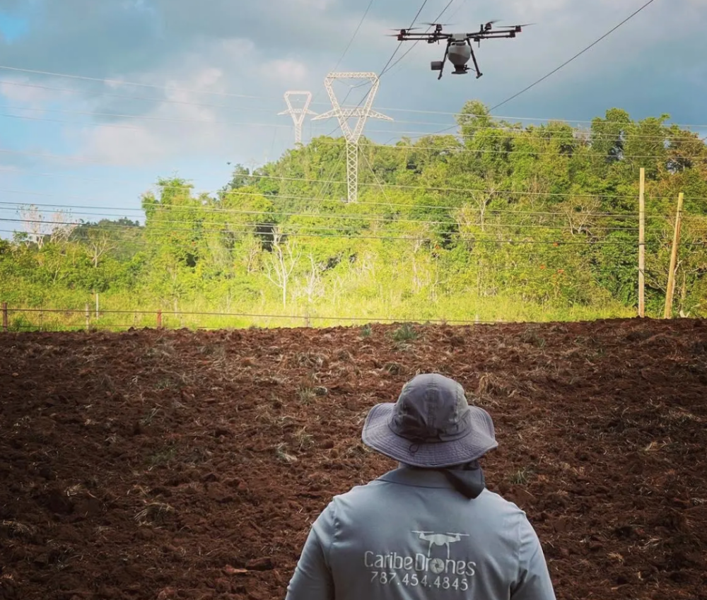 An employee of Caribe Drones flies a DJI MG1P agricultural drone in Puerto Rico.COURTESY OF CARIBE DRONES