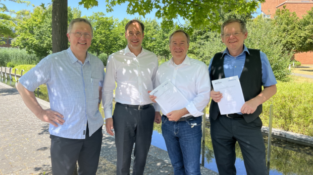 Photo: L – R: Theo Beisch (jetvision), Thilo Vogt, Jan-Eric Putze (both Droniq) and Günter Köllner.
