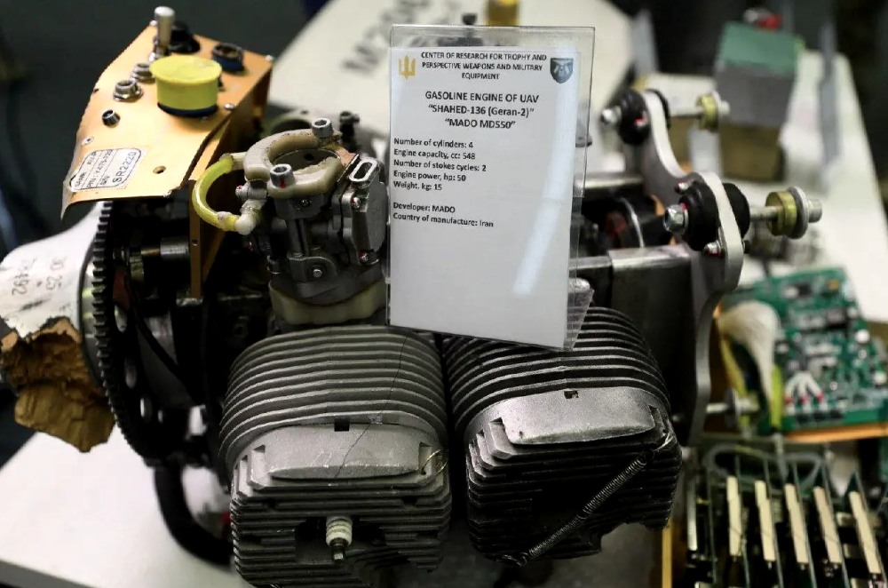 The Mado MD550 gasoline-fueled engine used by older versions of the Shahed-136 drones. (Ukrainian Military Media Center photo)
