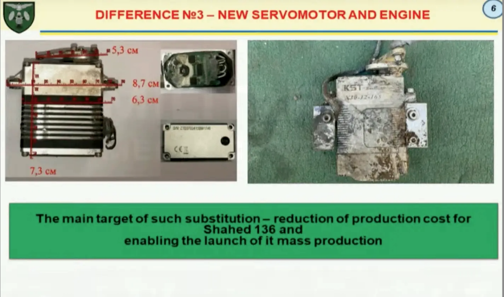 New Shahed-136 drones contain the new KST X30-12-165 servomotor, according to Ukraine. (Ukrainian Military Media Center screencap)