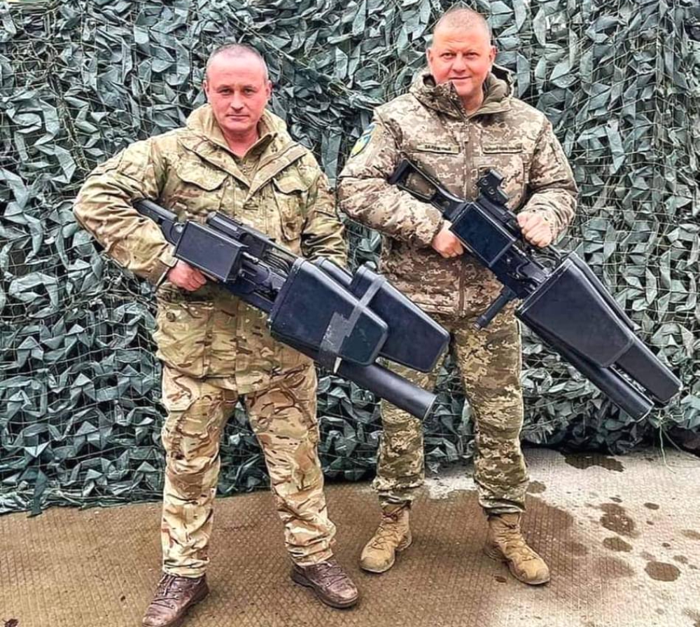 Commander-in-Chief of the Armed Forces of Ukraine Valery Zaluzhny (Right) Holding Skywiper Counter-Drone Gun