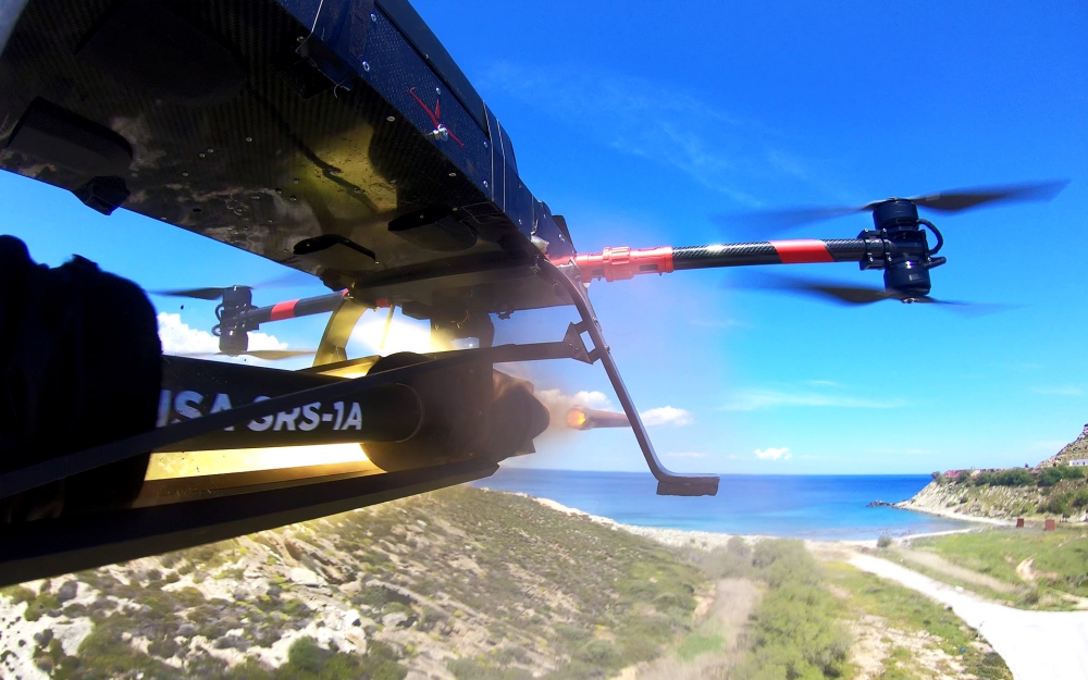 SARISA SRS-1 A can be equipped with one or two launchers of HYDRA 70, 2.75-inch / 70mm diameter rockets. The quadcopter can either be controlled by a large S.A.S-made control station for more demanding operations, or by a small off-the-shelf controller.