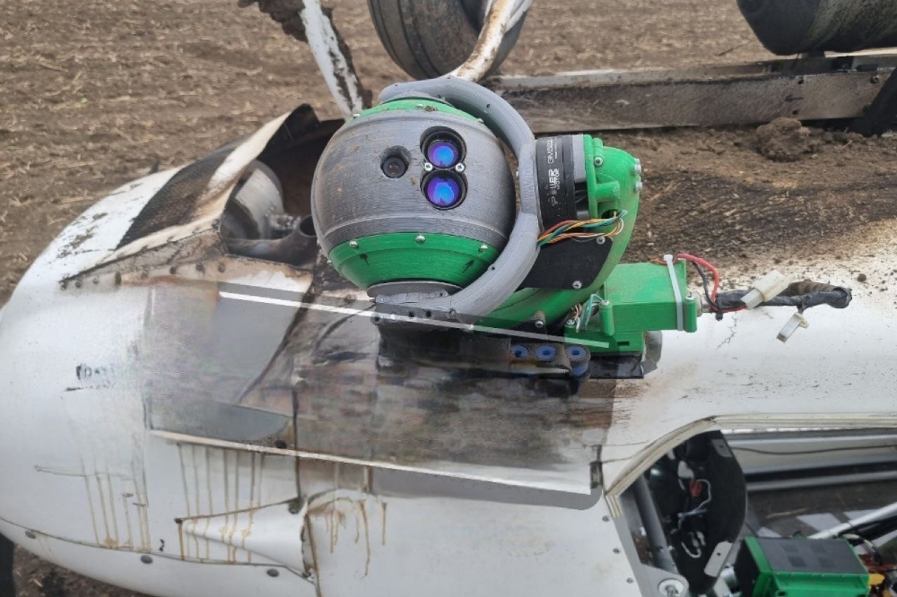 A photo circulated online by Russian propagandist Kirill Fedorov this week depicts the crashed do-it-yourself unmanned aerial vehicle upside down in a Russian field. The airframe is an adaptation of the Nynja, available pre-built from Aerosor in Kyiv, or as a kit the buyer assembles at home.