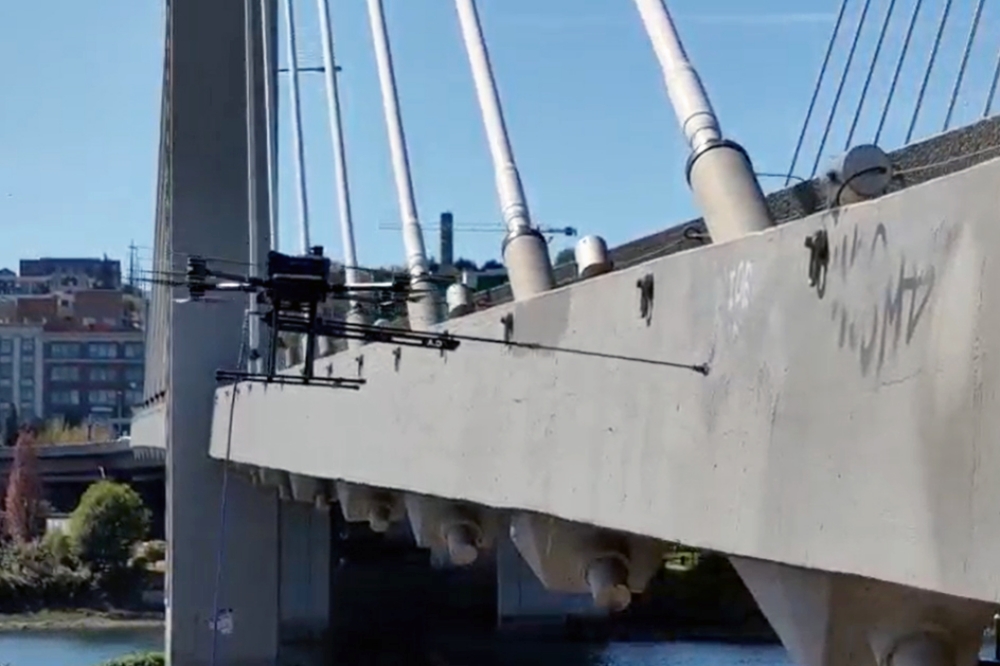 Crews at the State Route 16 Tacoma Narrows Bridge using drones equipped with high resolution cameras to complete inspections last fall