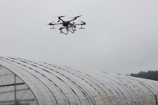 In order to reduce the labour required for agricultural work and to combat high summer temperatures, JA Zennoh Aomori (National Federation of Agricultural Cooperative Associations) is testing the use of drones to spray a shading agent on agricultural greenhouses.