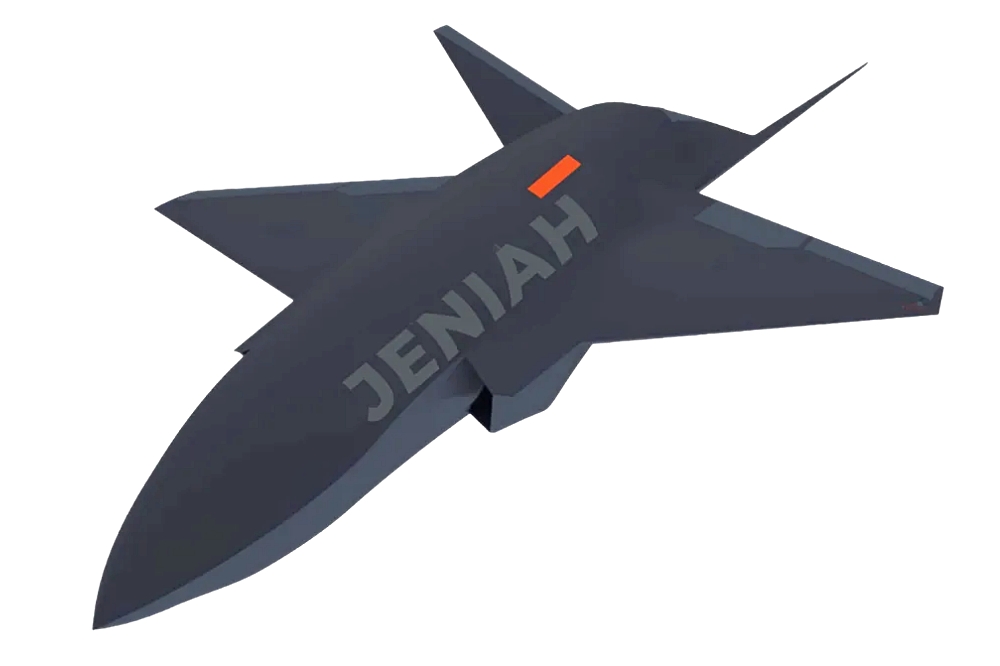 The Jeniah is designed for autonomous and semi-autonomous missions, utilizing artificial intelligence for target identification, navigation, and mission execution. The UCAV is optimized for networked warfare, operating independently or in coordination with other unmanned and manned assets. It is equipped for offensive strikes, surveillance, and battlefield support in contested environments, aligning with anti-access and area denial (A2/AD) strategies. It can function solo or in group formations and is capable of operating in high-threat areas with minimal communication requirements, using AI to assist in decision-making and situational awareness.