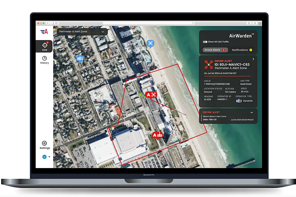 Designed as an affordable solution for entities concerned about drone incursions, AirWarden Essentials texts, emails, and provides on-screen alerts that pinpoint both the drone and pilot locations when drones enter a customer’s alert zone. AirWarden Essentials offers regional live monitoring capabilities which enables comprehensive drone detection across multiple locations from a single interface.