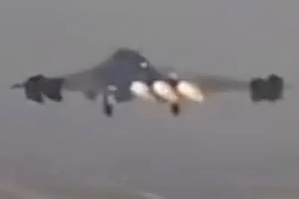 Second, we got the shot below of the J-36 in triple reheat during terminal operations (going around or taking off). This is an impressive and unique sight as the jet’s three-engine layout is certainly exotic by tactical jet standards. The J-36’s large twin split ruddervons on each wing are also seen in this image.