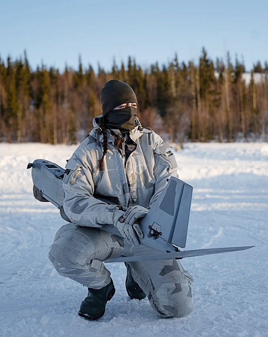 Top Photo: UAV OPERATORS ON SNOWMOBILES DURING ARCTIC STRIKE. PHOTO: SWEDISH ARMED FORCES
