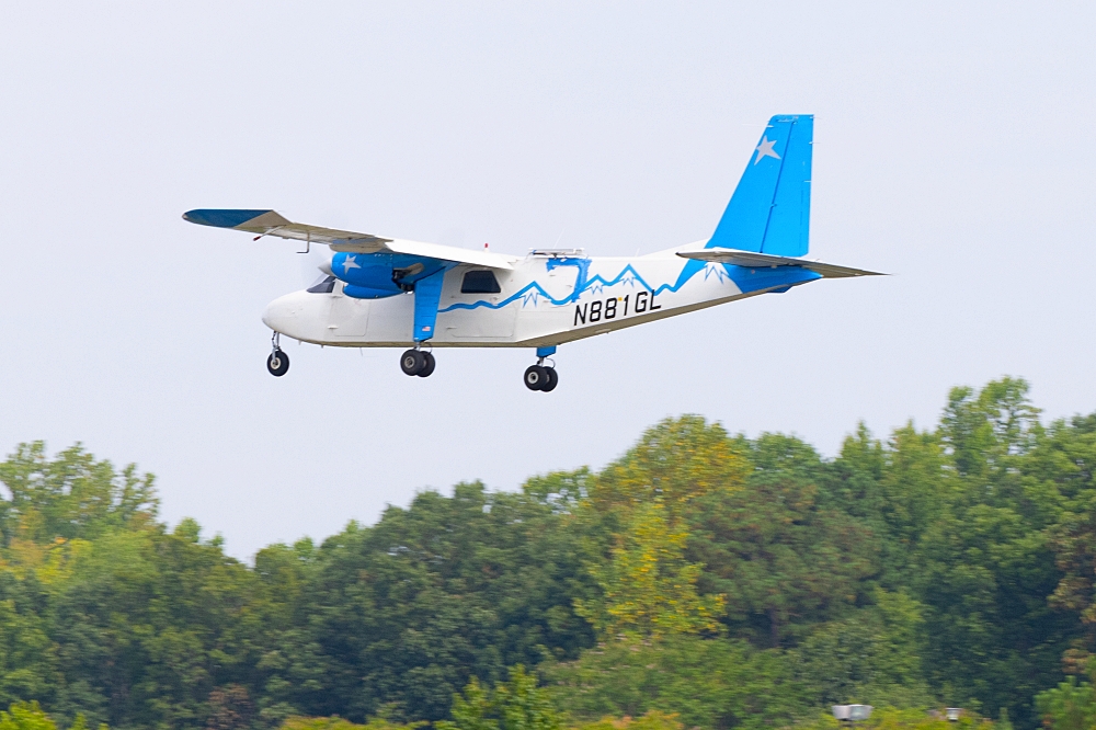 A Britten-Norman Defender aircraft outfitted with an advanced phased array antenna prototype for a flight test in summer 2024. The aircraft was used to verify data transmission quality and communications link resiliency with a low Earth orbit satellite. Credit: U.S. Navy