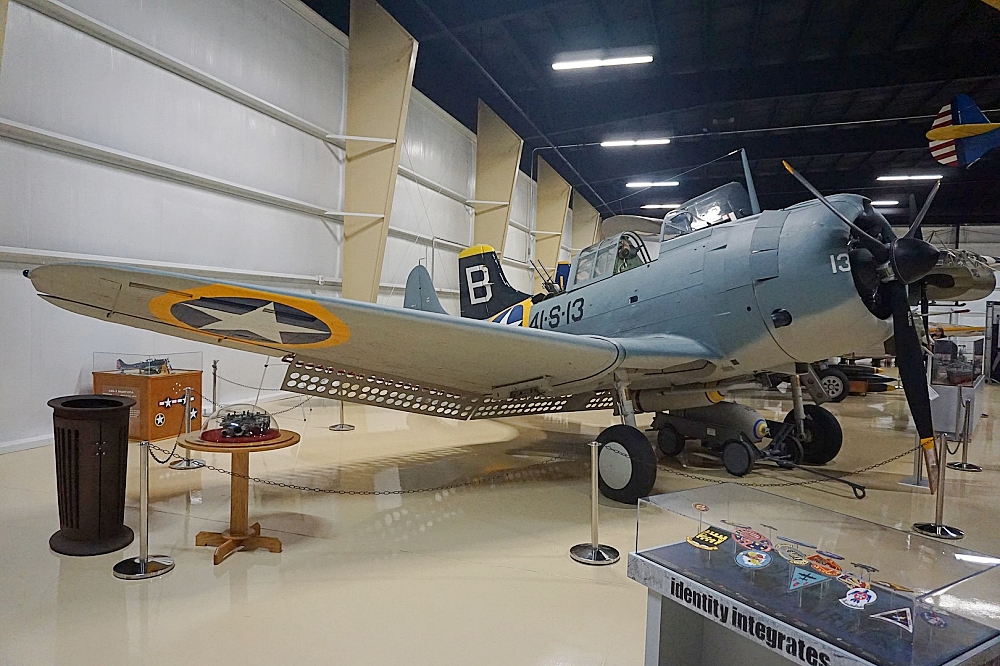 A Douglas SBD-3 Dauntless on display at the Air Zoo at Kalamazoo/Battle Creek International Airport in Portage, Michigan