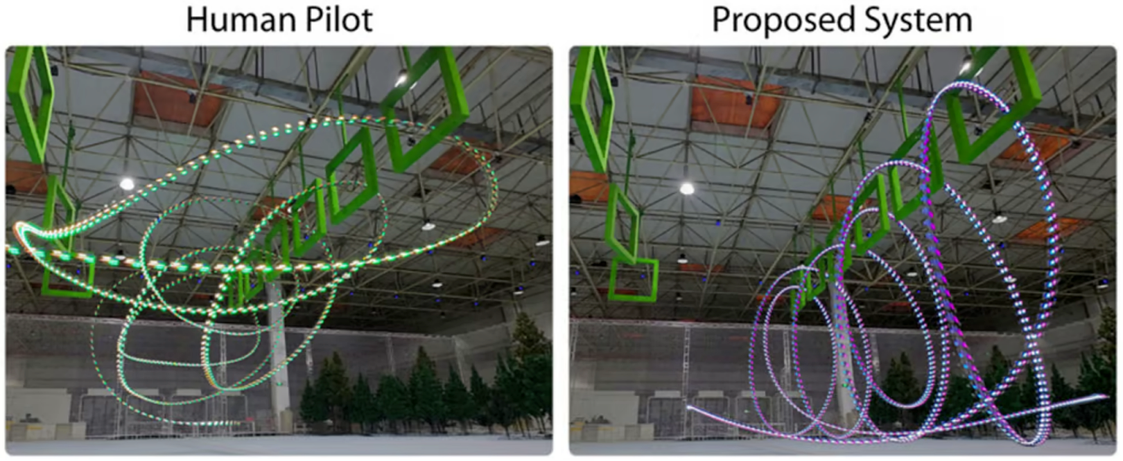During ensuing trails, the drone flew through tight obstacle courses, even inverted, with hummingbird-like agility. In a one-on-one test, it beat a professional human pilot with a perfect success rate of 100% versus the 12.5% exhibited by the pilot.