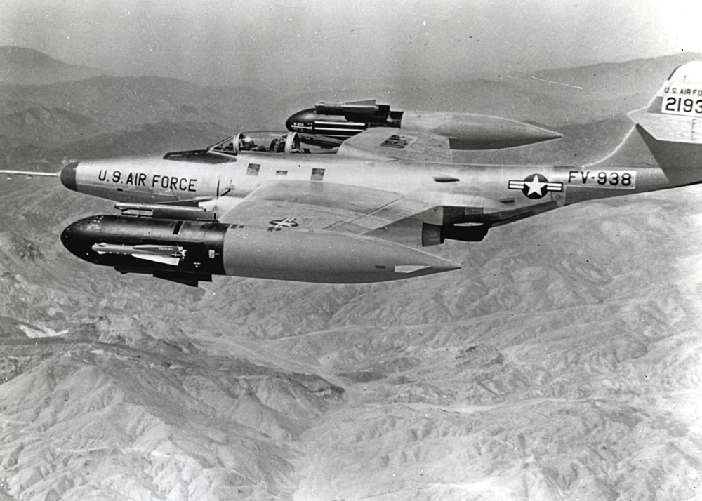 F-89H showing its GAR-1/2 Falcon missiles extended from the wingtip pods