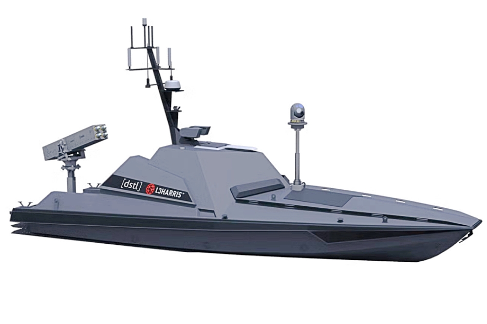 Finally, as Black Wake, the system is mounted aboard an uncrewed surface vessel (USV, or ‘drone boat’). The drone boat in question is the Maritime Autonomy Surface Testbed (MAST) 13, a 41-foot high-speed vessel that uses L3Harris’ ASView proprietary autonomous control system. In this instance, the rocket launcher is mounted at the rear, with the telescopic mast for the sensor turret at the front, in a concept that is loosely reminiscent of rocket-armed USVs developed by Ukraine.