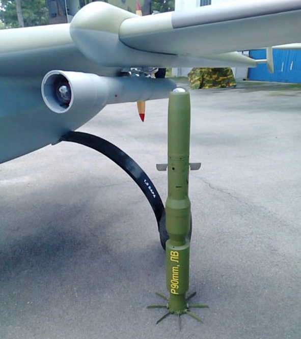 Close-up view of the PEGASUS UAV’s underwing hardpoint fitted with a 90mm Serbian rocket launcher – Cyberspec1 via X